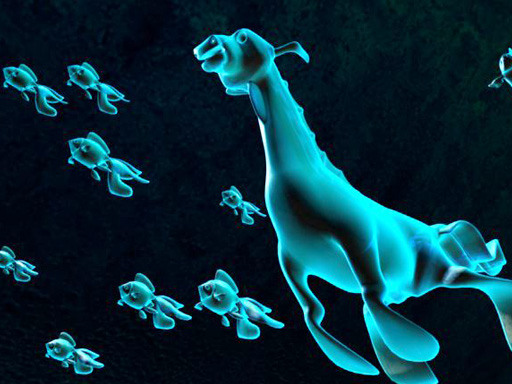 Posed Sea Monster swimming with goldfish, ramp shader applied