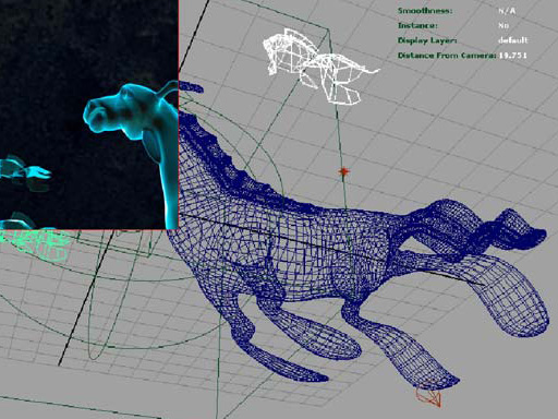 Posed Sea Monster swimming with goldfish, partial wireframe